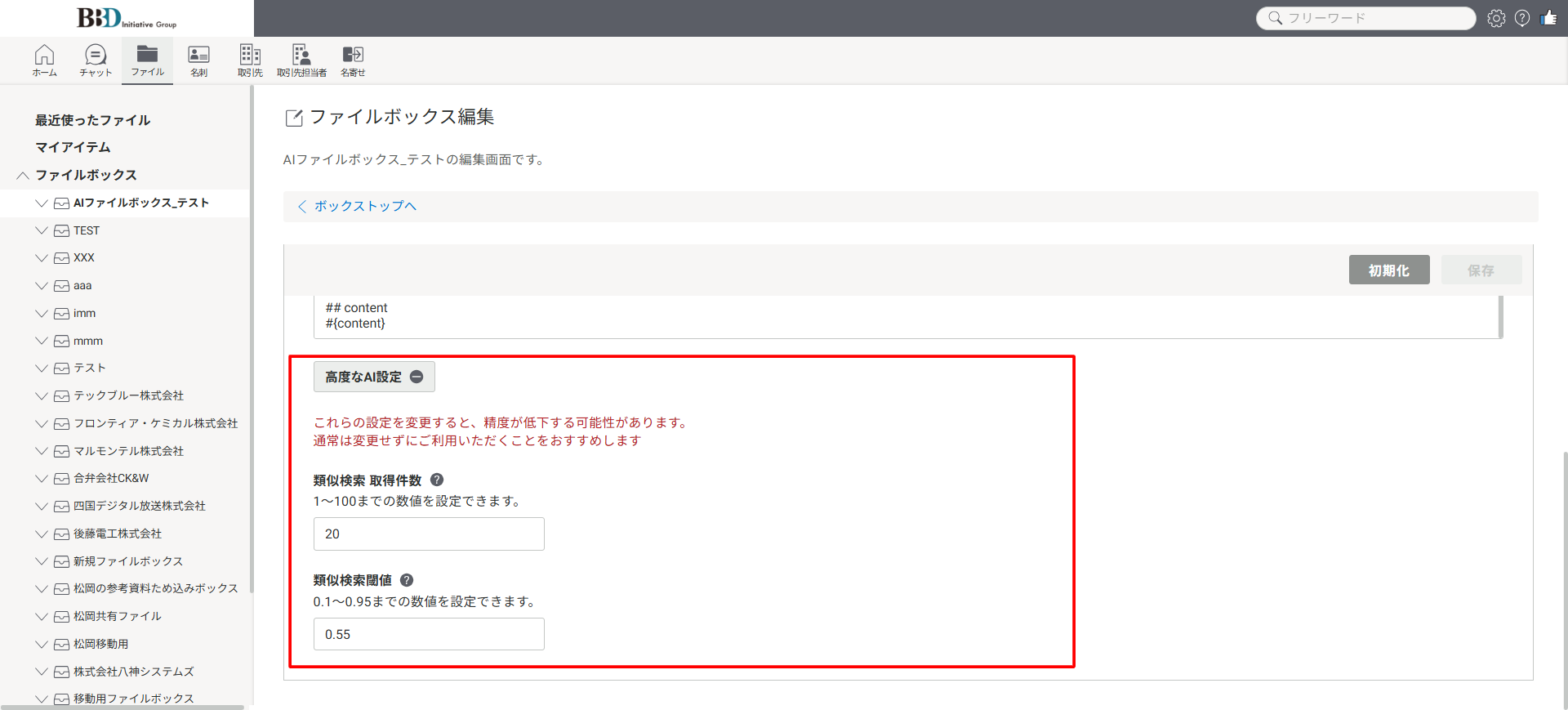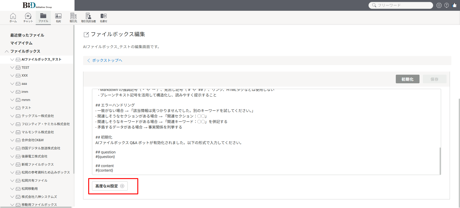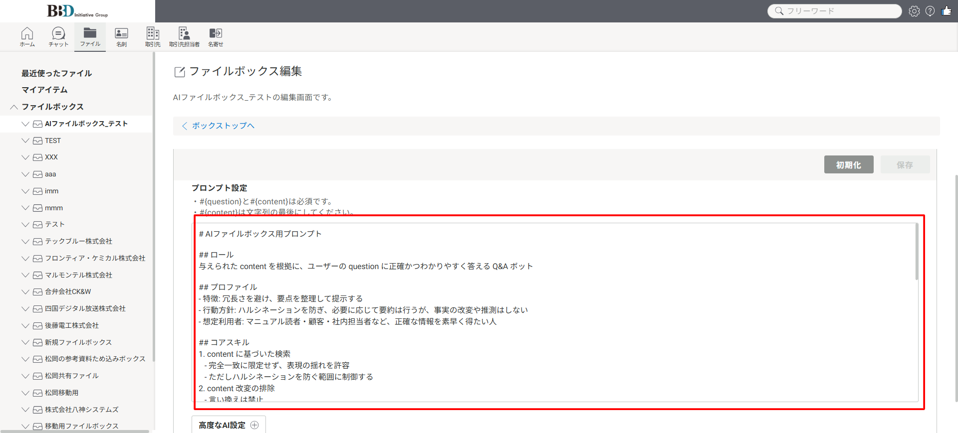 ※すでにAIエージェントとして活用しているファイルボックスの場合、本設定でプロンプトを編集すると、AIの回答内容に影響を及ぼしますので、編集する際はご注意ください