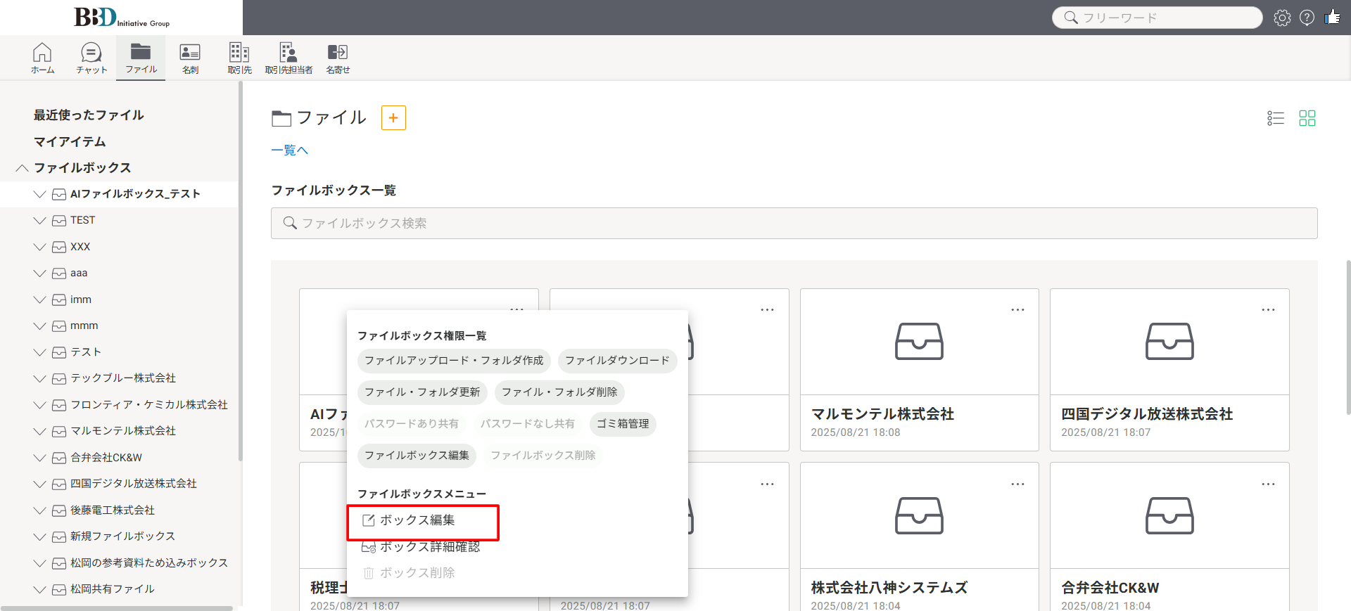 ●[ボックス編集]を押下します。