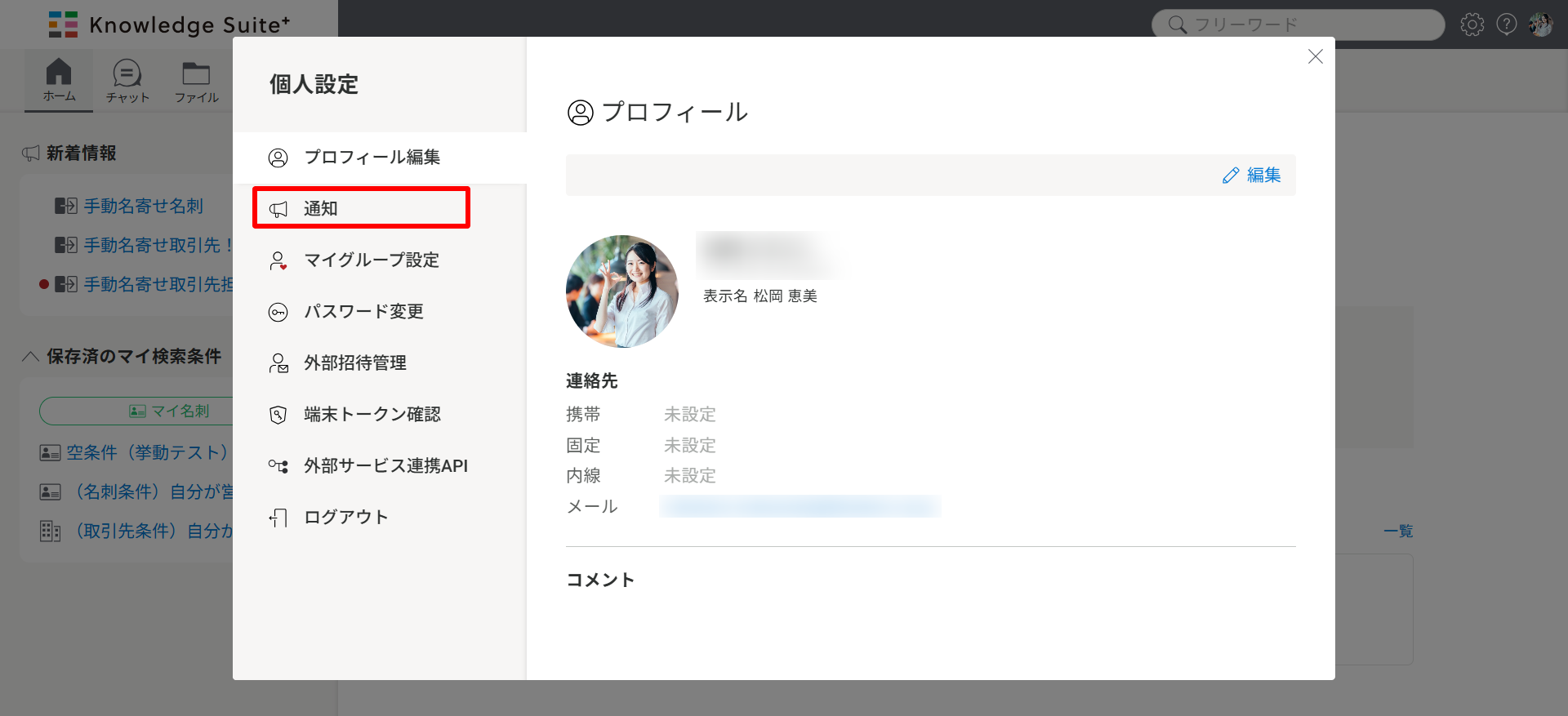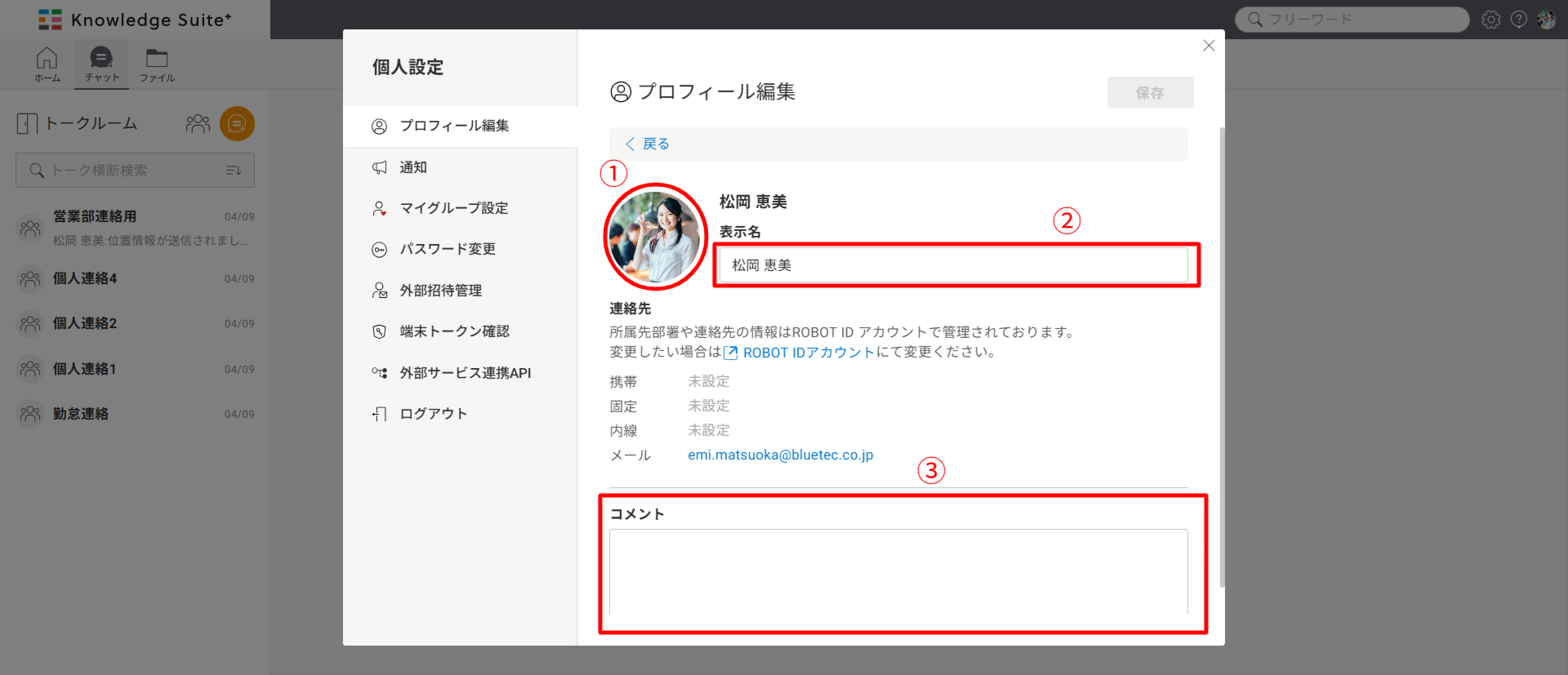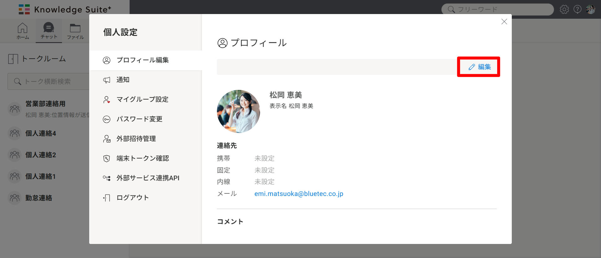 AIファイルボックスでは個人設定からプロフィール情報を変更できます。