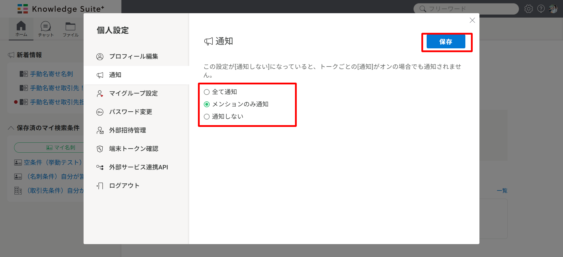 3.通知設定の画面が表示されます。通知設定では、以下3つの設定を選択できます。任意の設定を選択し、保存を押下してください。