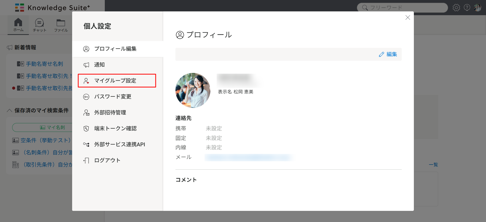 マイグループとは、自分が所属するチームや部署など、頻繁に連絡を取り合う可能性のあるユーザーをマイグループとして設定できます。