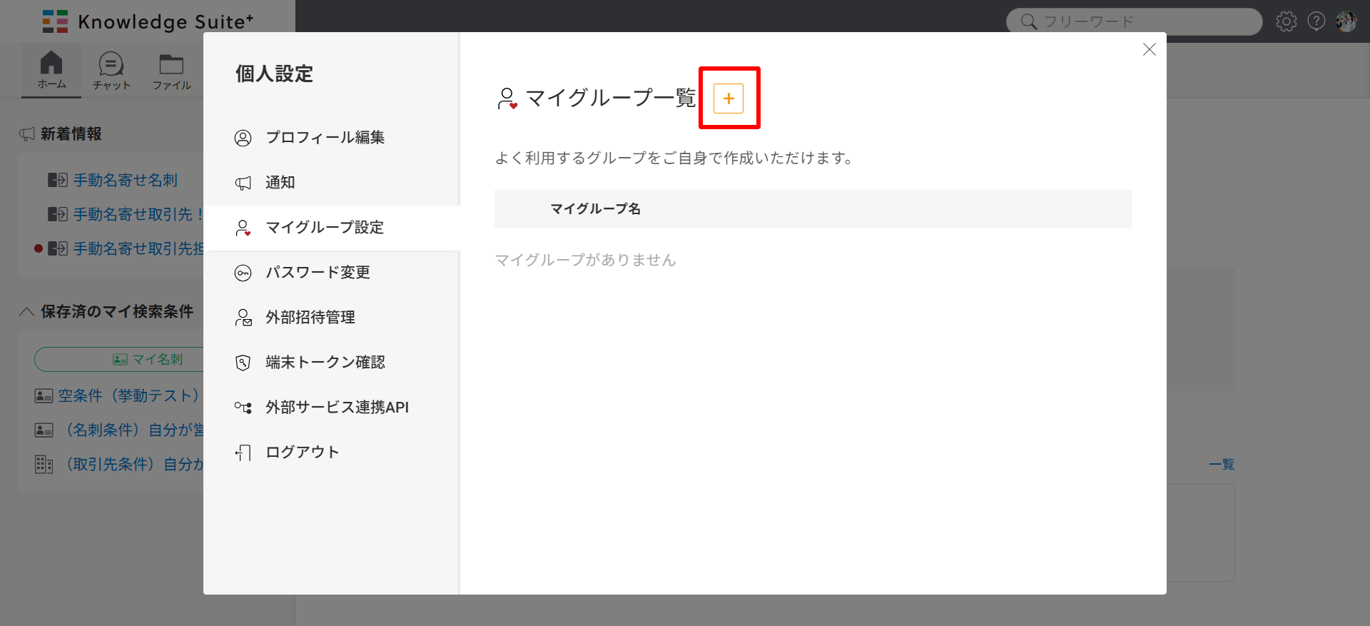 3.自身のマイグループ一覧を確認できます。画面上部のmceclip17.pngアイコンを押下します。