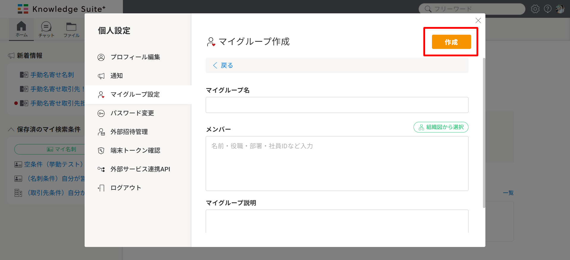 5.各項目の入力完了後、[作成する]を押下しマイグループの作成が完了します。