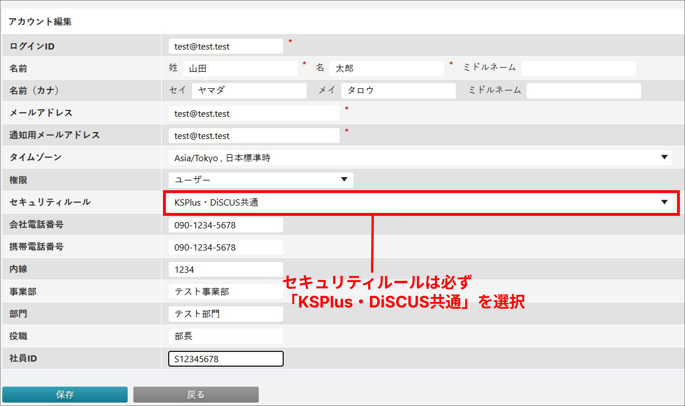 セキュリティルール(※) 必ず「KSPlus・DiSCUS共通​」を選択してください。セキュリティルールが未選択状態だと、ユーザーのAIファイルボックスへのログインが不可能となります。