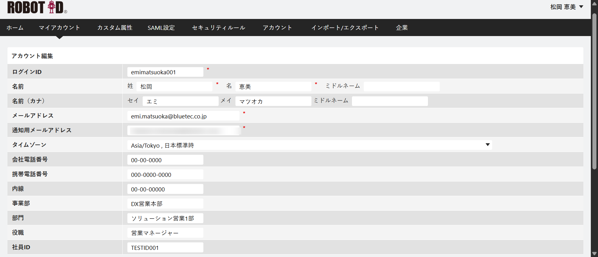 ※また、所属先部署や連絡先の情報はROBOT ID アカウントにて管理されております。