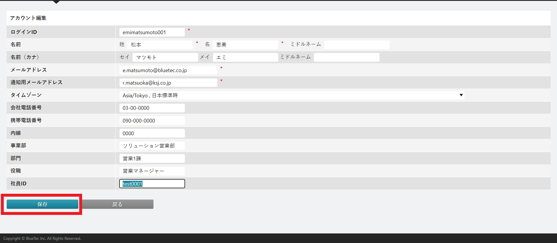 4.項目の入力後、[保存]を押下することでアカウントの作成が完了します。