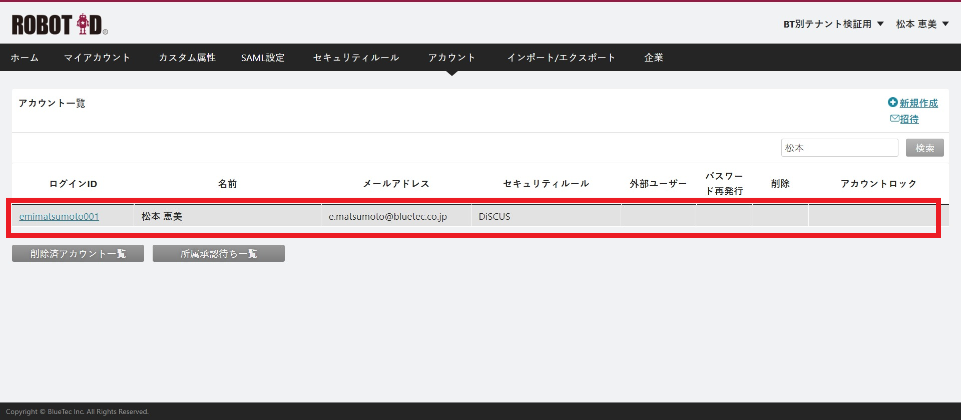 5.アカウント一覧に先ほどのアカウントが追加されていれば、ユーザーの登録完了です。