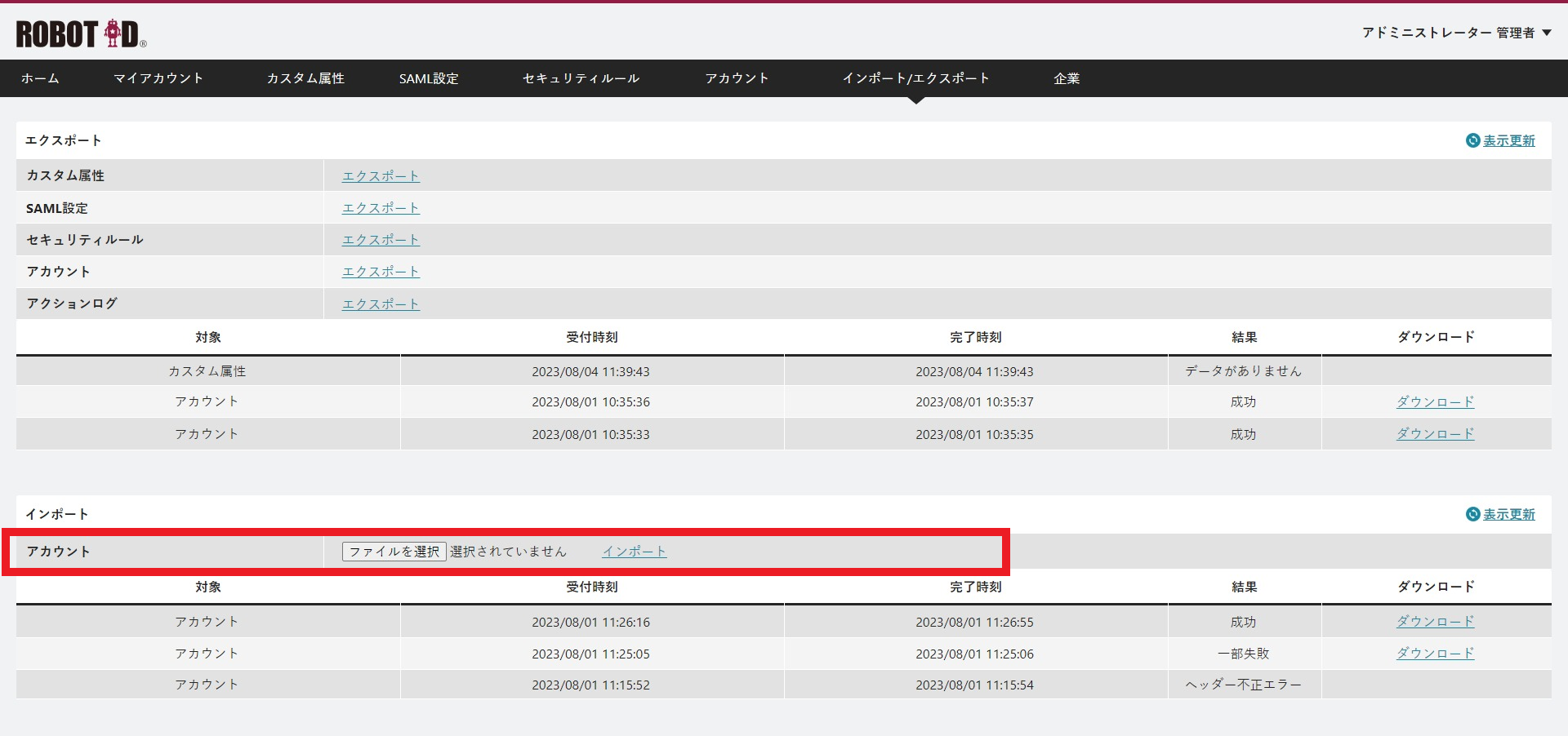・CSVファイルをインポートしてユーザーアカウントを一括登録する