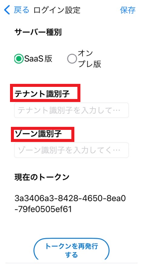 1.アプリを起動後、次のような画面が表示されます。オンプレ版の利用者以外はSaaS版を選択し、テナント識別子とゾーン識別子をぞれぞれ入力します。